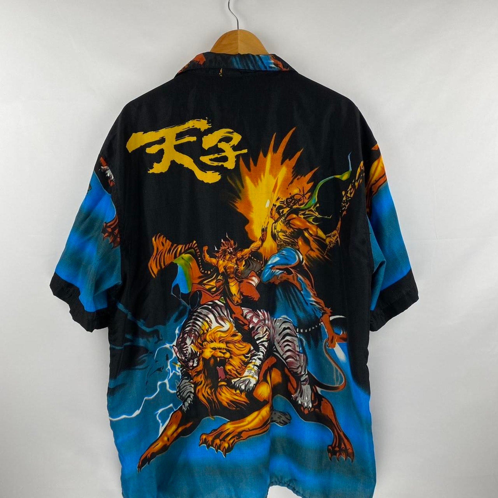 Vintage 90s/2000s Y2K lions fighting lightning aop anime button up