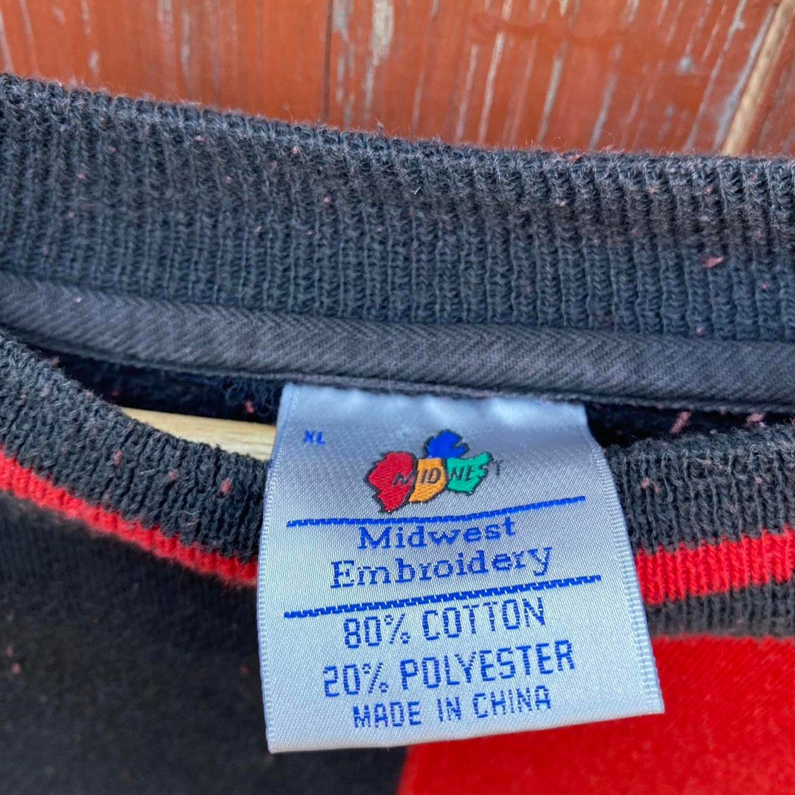 Flaws: Bleeding on N and wear on embroidery